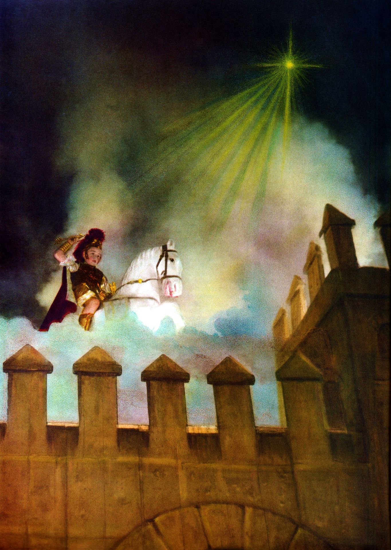 L’acte de l’Aparició de Sant Jordi sobre els merlets del Castell de Festes d’Alcoi és, sens dubte, el moment més emotiu i simbòlic que tanca la Trilogia Festera. Al centre d’aquest miracle perpetu, la figura del Cavallet de cartó ha estat l’element silent que ha permès al Sant Jordiet cavalcar entre els núvols de pólvora durant generacions. El projecte impulsat per l’Alferesia dels Realistes 2026 ha permès, per primera vegada, desvetllar els secrets d’aquesta peça, revelant que no som davant d’un simple objecte d’atrezzo, sinó davant d’un tresor històric d’un valor incalculable.
